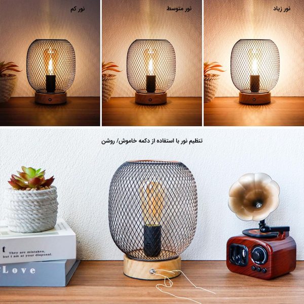چراغ خواب رومیزی قفسی فلزی JHY DESIGN روی میز چوبی