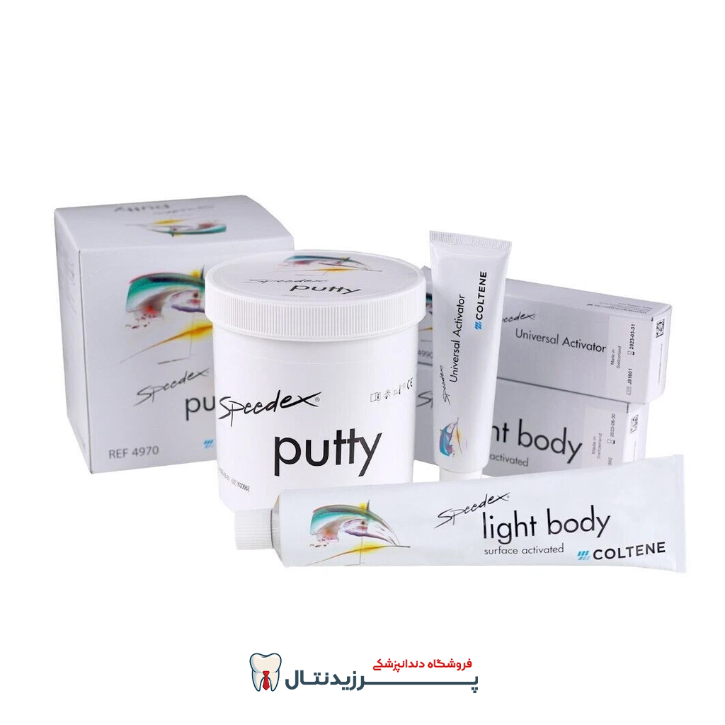 اسپیدکس معمولاً شامل پوتی (Putty) و واش (Light Body) است که امکان قالبگیری دو مرحلهای یا همزمان را فراهم میکند. ترکیب این دو ماده باعث میشود هم جزئیات ظریف و هم حجم کلی قالب با دقت بالا ثبت شود.